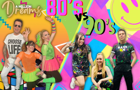 80s vs 90s tribute show is a three-piece, fully costumed show. The band brings the sounds of the 80s to your party. It's time to pull up those acid wash jeans, adjust those shoulder pads, throw on those leg warmers, put down the diskman and your tamagotchi as we take a step back in time to the 1980's and 1990's.
